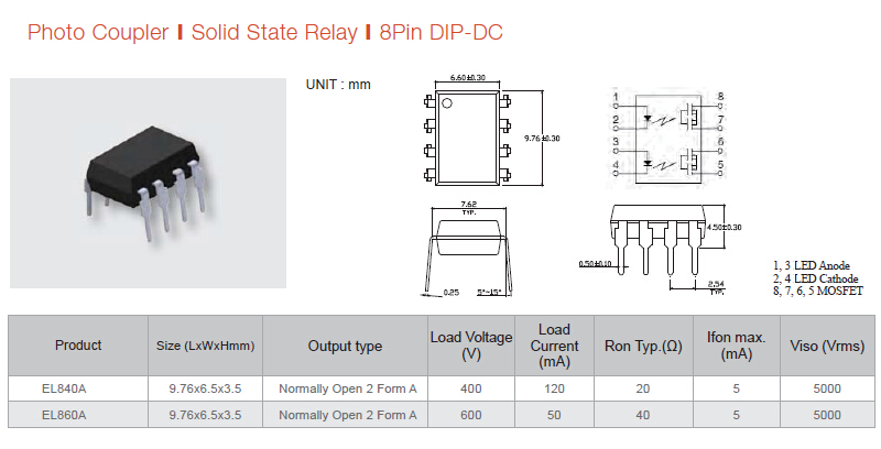 亿光光继电器 DIP-8Pin光耦 EL840A EL860A