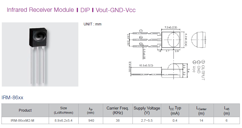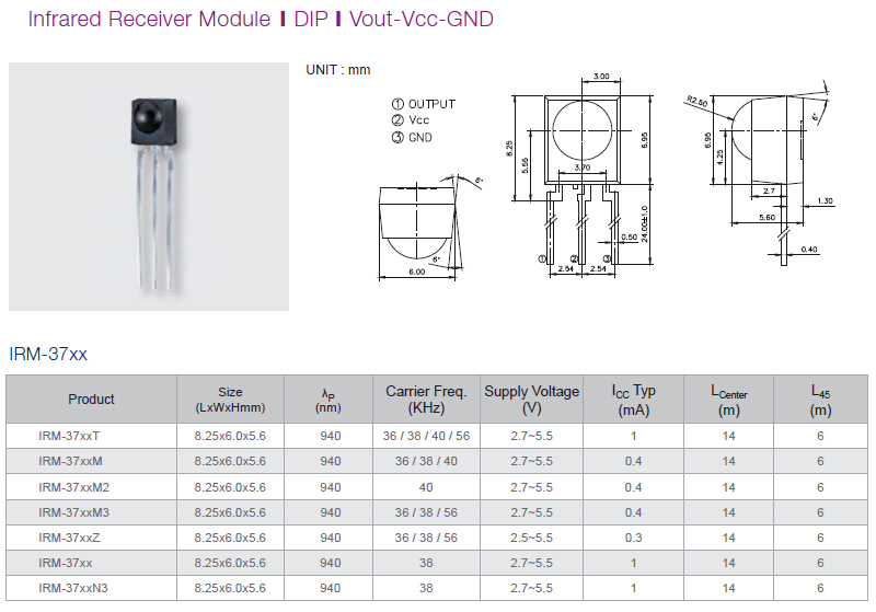 亿光红外线接收头 直插接收头IRM56384 IRM3638