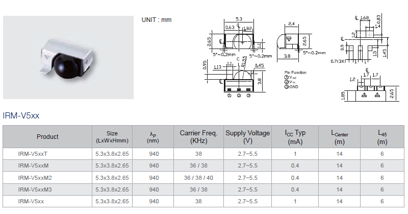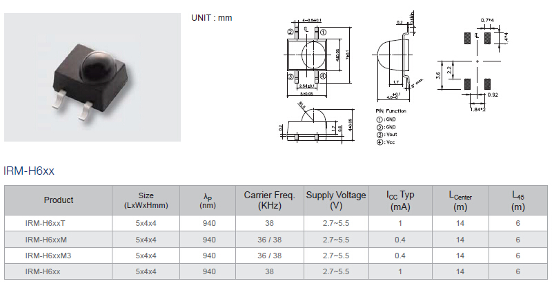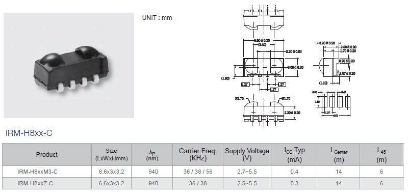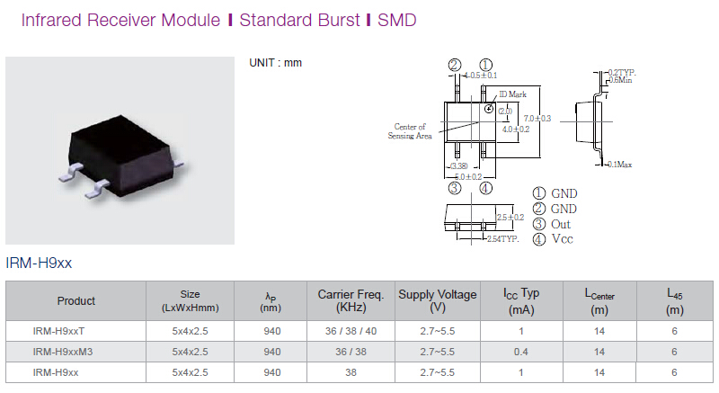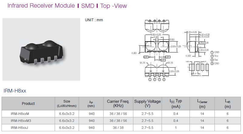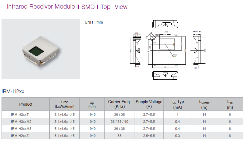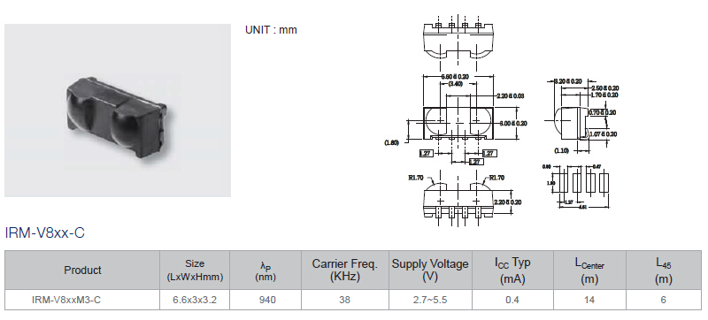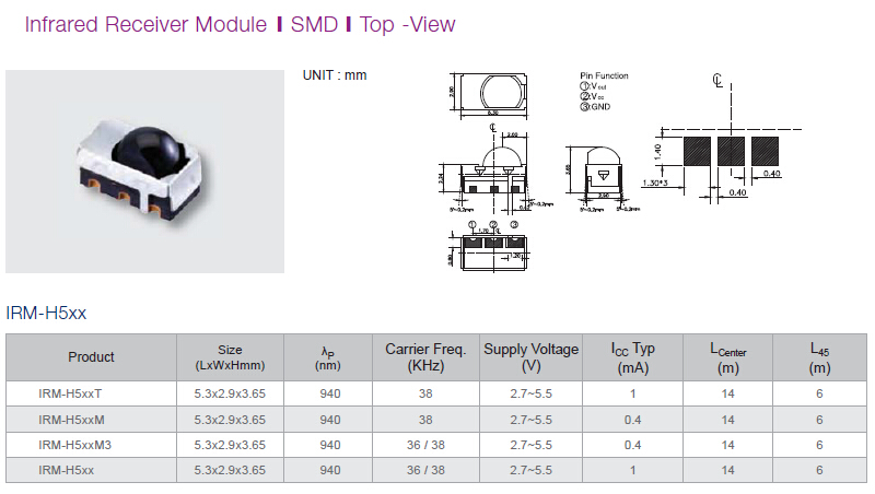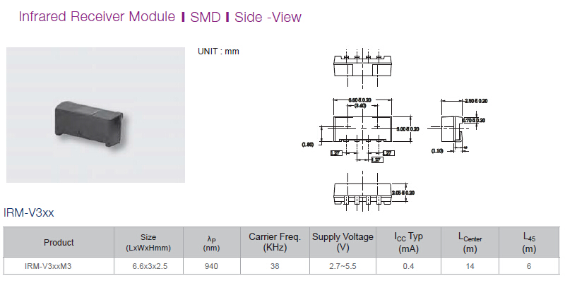 亿光红外线接收头 贴片接收头IRM-H638T/TR2