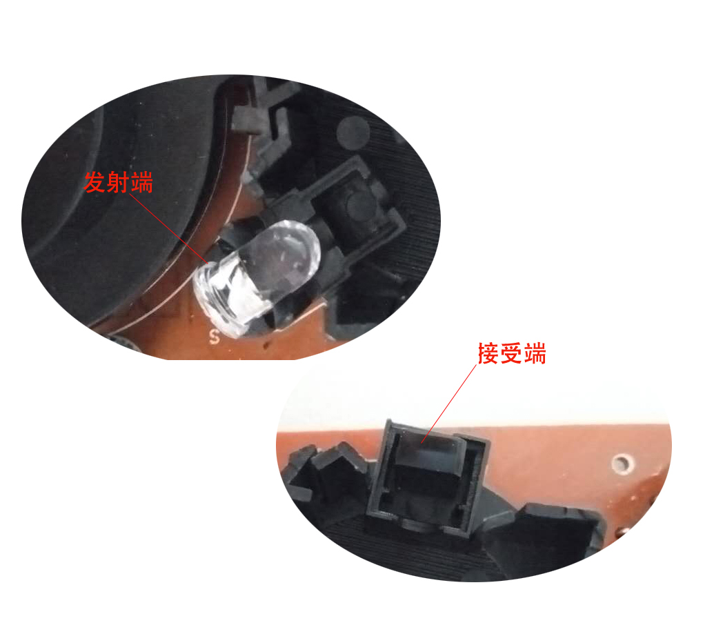 图中为烟雾传感器内的光学迷宫由发射端和接收端两部分组成