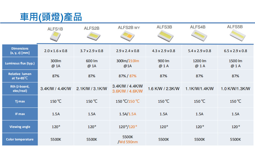 车用前灯产品方向