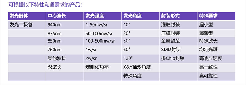 可综合考虑发光中心波长、发光强度、封装形式、特殊要求等因素,结合产品的性价比,选择合适的产品。