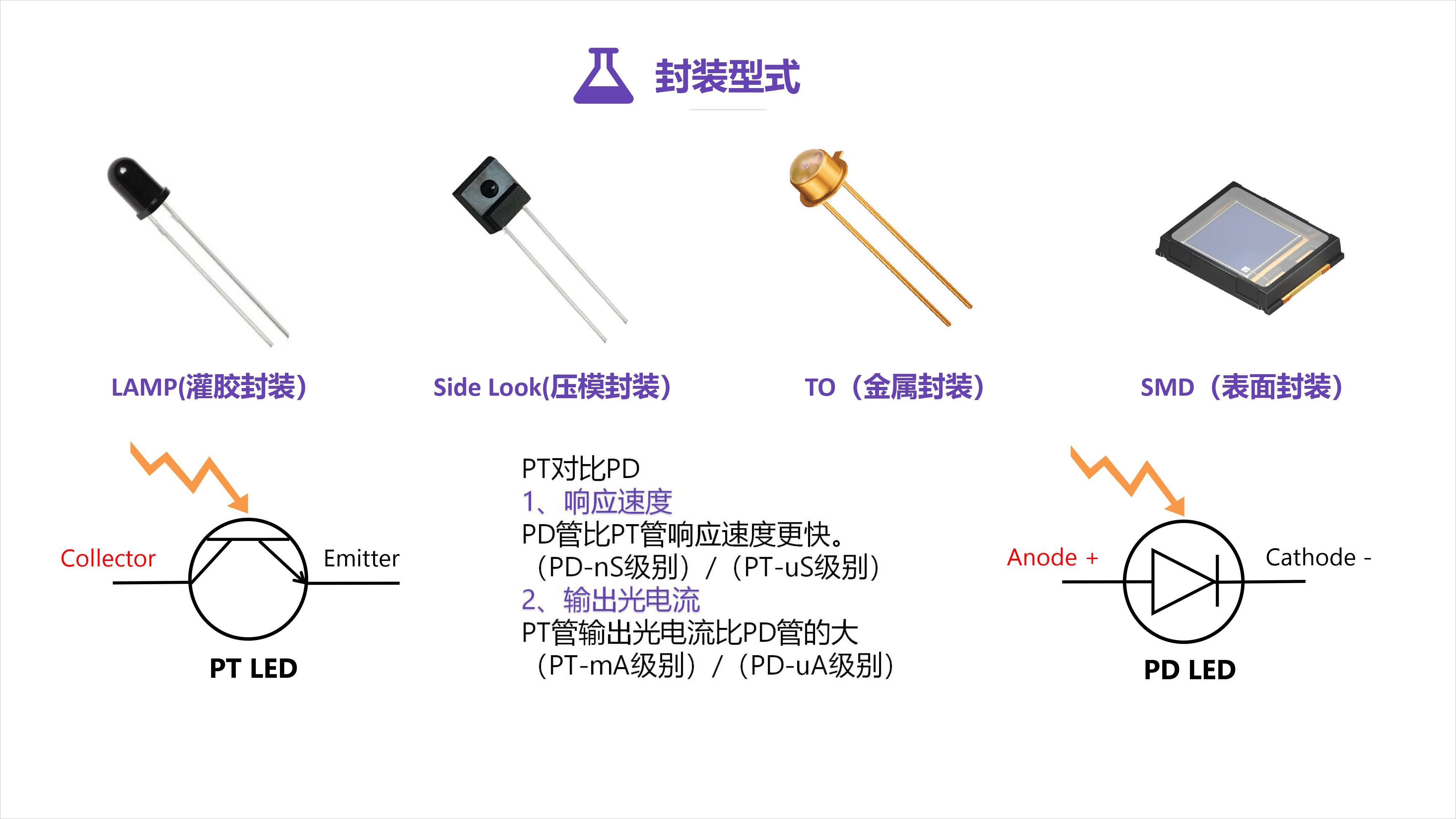 收光器件可以将光信号直接转换成电性号,其芯片是具有光敏特征的PN结,可根据参杂的滤光色素不同,感应不同波长的光。