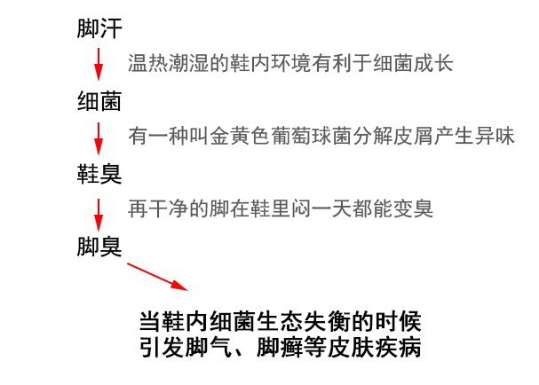 这是一个系统的环节,脚汗是源头,从源头上解决任何一点,都能有效阻止下一个环节。