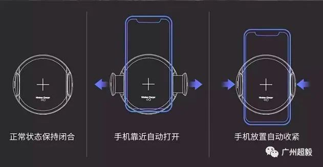 采用红外感应方式,手机接近,自动展开夹子,然后,自动夹住手机!