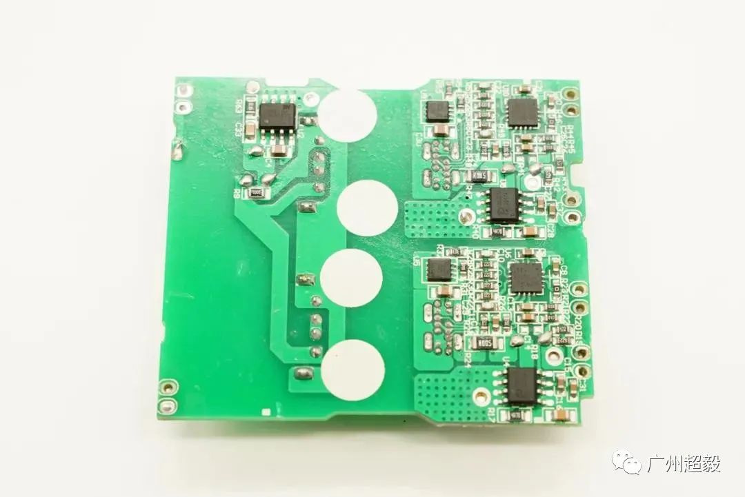 输出PCB板背面一览,右侧是两个USB-C口的同步整流输出电路,设计布局完全一样;左上角则是USB-A电路的次级同步整流芯片。