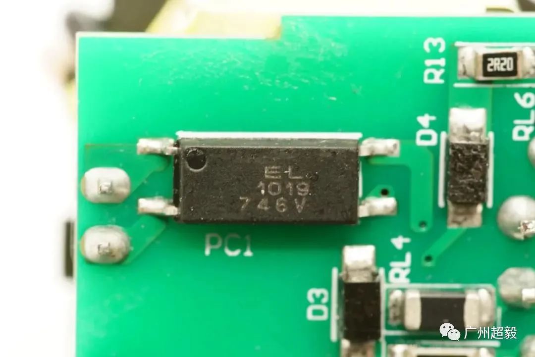 拆解部分原件发现,亿光EL1019光耦在ABB四位USB输出18W PD快充插座上应用,横跨在初级和次级之间,用于初级次级通信,反馈调节输出电压。