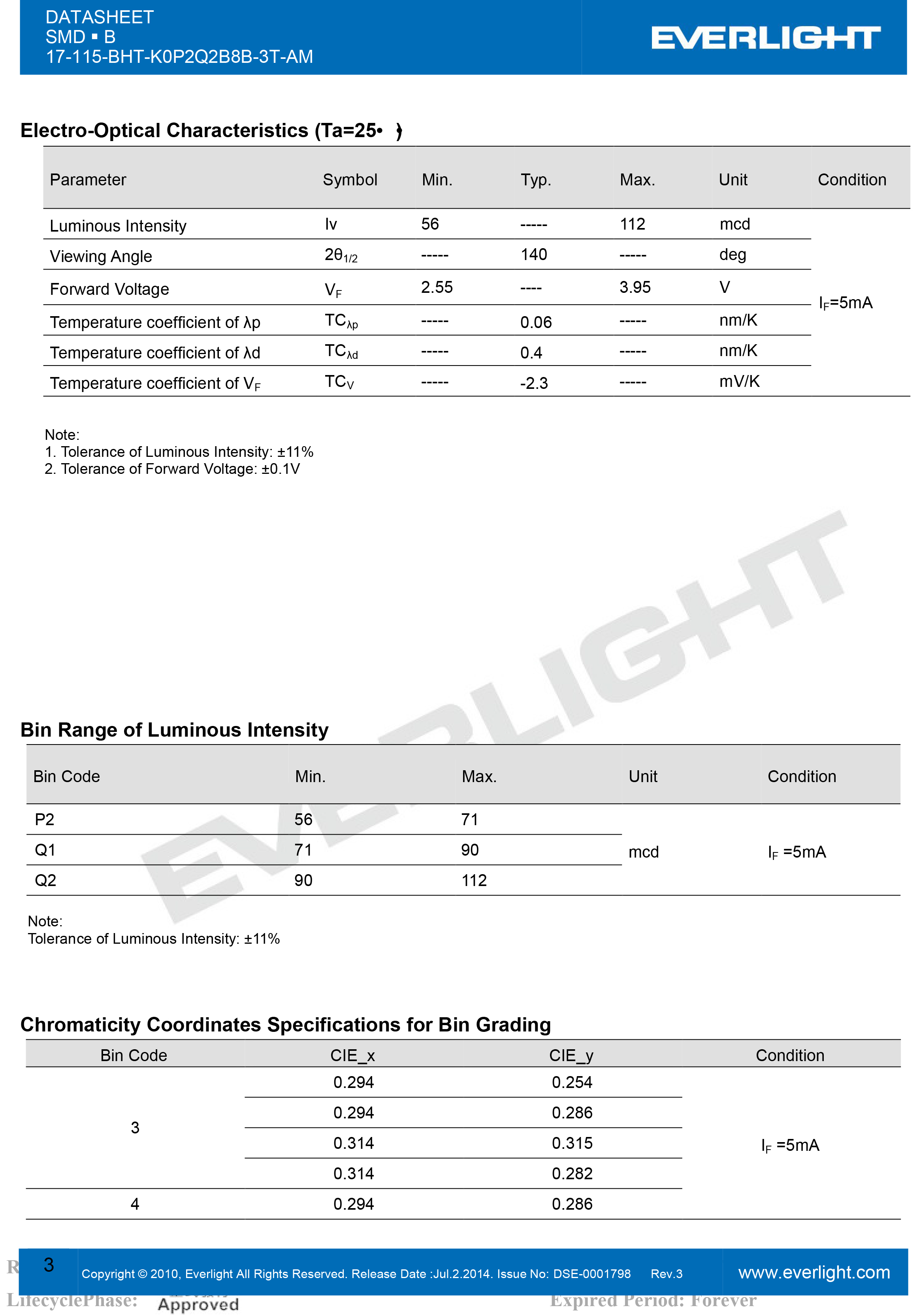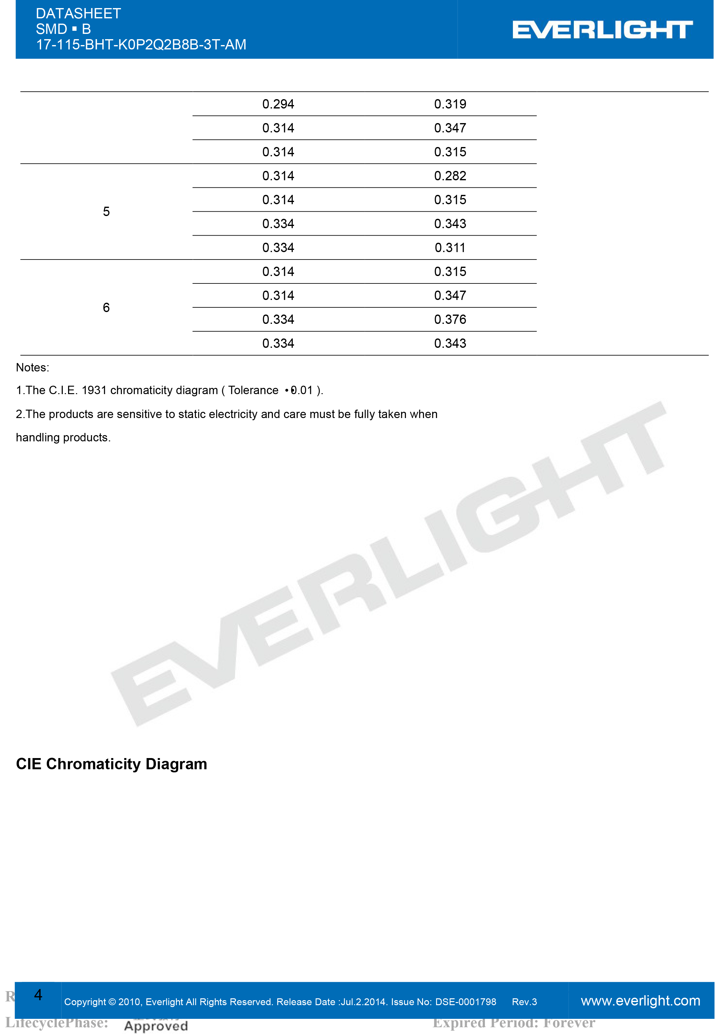 0805系列蓝光灯珠,部分规格书如下