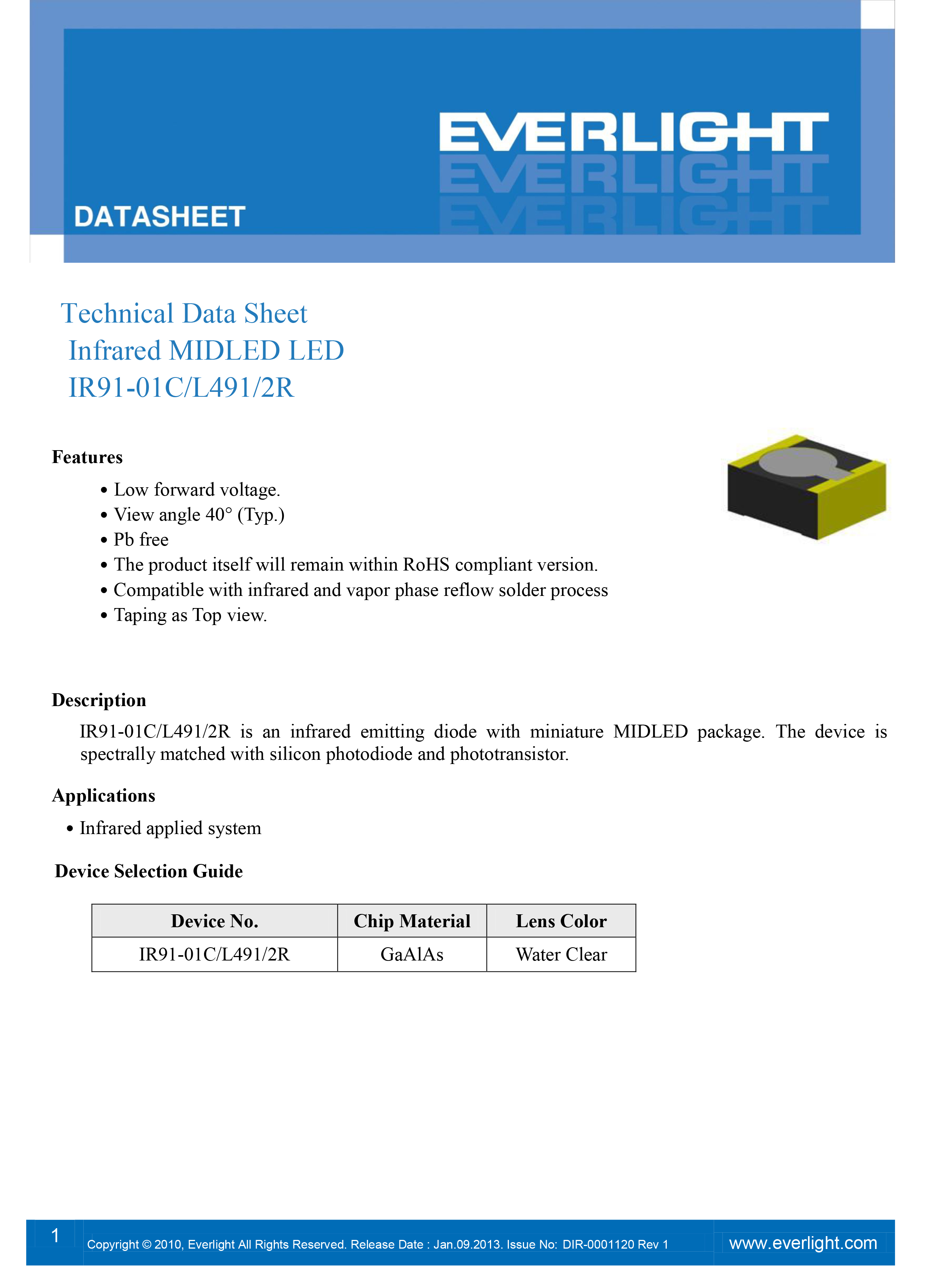 智能手机的遥控设备可以直接忽略遥控器用智能手机来进行遥控,如电视机、空调、音箱等。而亿光的IR91-01C/L491/2R系列红外线发射头便可以应用在智能手机上,这个系列的红外线发射头是一种微型MIDLED封装的红外发射二极管,该器件与硅光电二极管和光电晶体管光谱匹配。