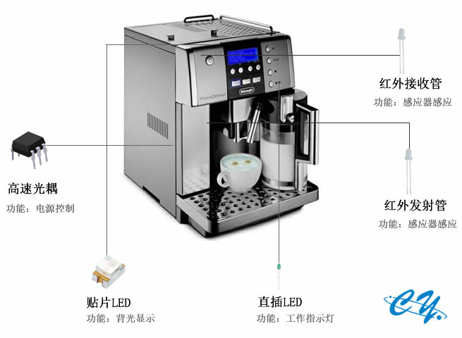 亿光光耦EL3021,它主要应用在全自动咖啡机的电源开关上,用来隔离传输、控制,可以防止干扰和故障扩大化。