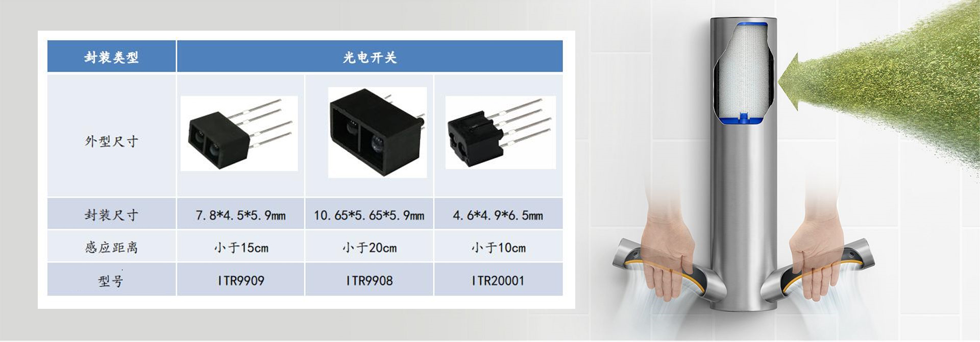 这里推荐几款干手器/智能皂液机专用光电开关: