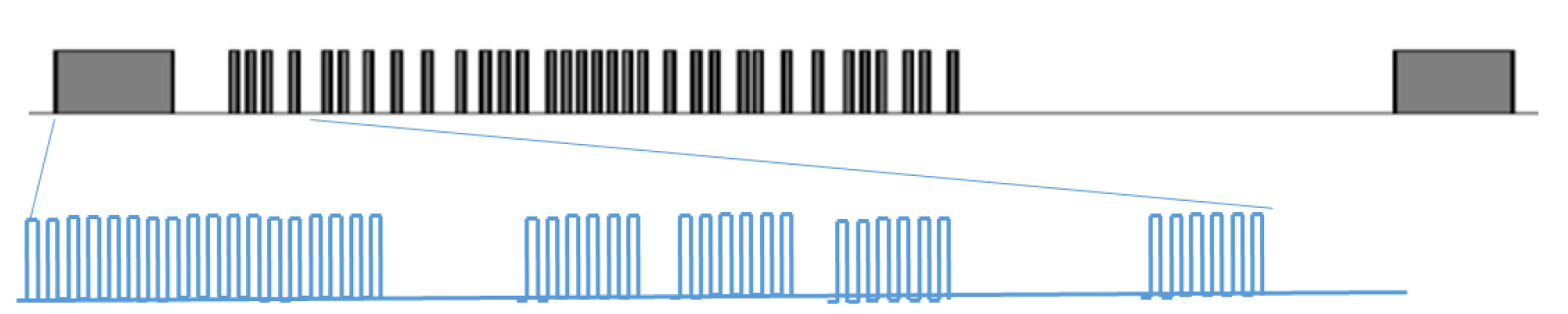 与大多数无线传输技术一样,为了避免来自环境中相同波长的电磁波的干扰,在传输信号中添加载波(如下图所示)。载波的频率范围为30k~60kHz,最常见的载波频率为38kHz。