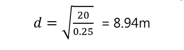 以亿光的IR26-61C/L510为例,如果在if=20mA,环境温度为25℃下工作,辐射强度约为20mW/sr,一般红外接收器的灵敏度约为0.25mW/m2。距离d约为