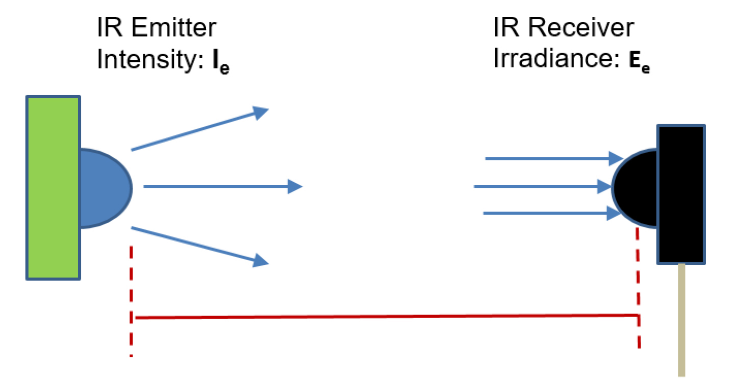 在没有干扰(光、辐射和电路)的情况下,图3中的红外发射强度与传输距离的关系可参考以下公式: