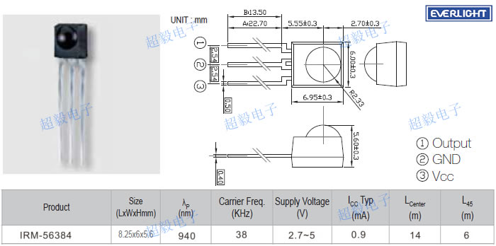 2.)电压:红外线接收头的电压有宽电压和单电压之分,一般情况下单电压有5V、3.5V。