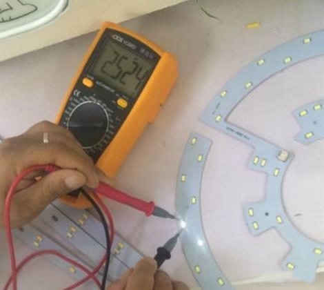 5、若灯亮,则表示灯珠功能上基本无碍,若不亮灯,将红黑表笔交换再测试一下。以免有些灯珠的阴阳极与一般的相反。灯珠亮灯观察灯珠颜色,色温是否符合要求。亮度是否合适。选用合适的灯珠。