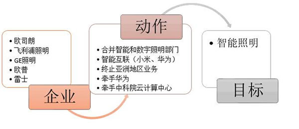 2016年终端照明企业的变化也是很明显,从国际市场的企业来看,飞利浦照明独立IPO,明确未来走向智能互联,欧司朗出售传统业务,合并智能照明和数字照明业务,而GE更是终止亚洲业务,专心发展智能照明市场;回归国内市场,欧普照明上市之后,牵手华为发展智能家居,雷士照明更是与中科院云计算中心正式签约,推进智慧照明合作。